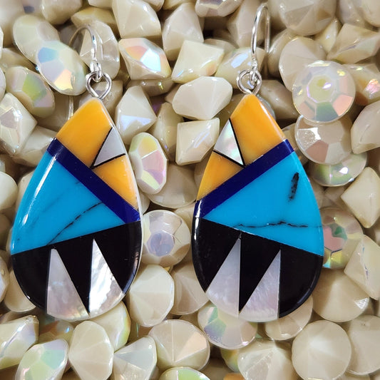 Mosaic Mother-Of-Pearl Resin Earrings - Ethnic Southwestern Design Jewelry