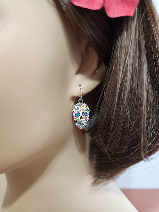 Sugar Skull Earrings - Dia de los Muertos Gift for Her or Him