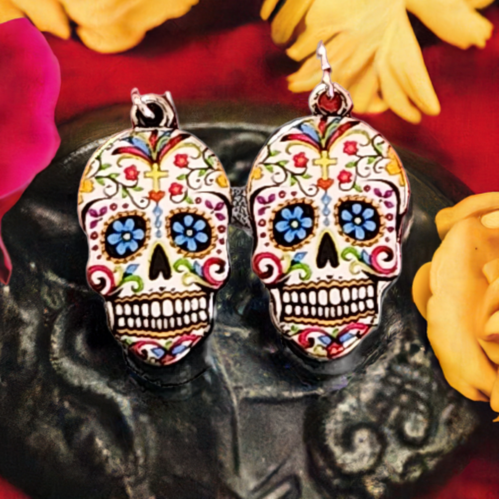 Add some playful flair to your collection with these sugar skull earrings! These charm earrings feature a quirky take on the classic calavera design, hanging from sterling silver ear wires. Perfect for embracing a Gothic or Boho style, and even great for Dia de los Muertos or Halloween festivities. Give the gift of unique and celebratory jewelry!